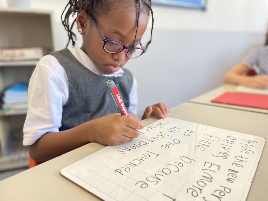Creative writing is taught as part of an English lesson for four hours a week but many more opportunities to practise and apply the skills learnt in these lessons are provided across the curriculum. We also try to create as many real-life situations for the children to practise writing skills. For instance, application letters for class or school monitor roles, thank you cards to visitors, invitations to events etc. In addition to the English lesson, spelling and handwriting are regularly taught as separate lessons throughout the week.